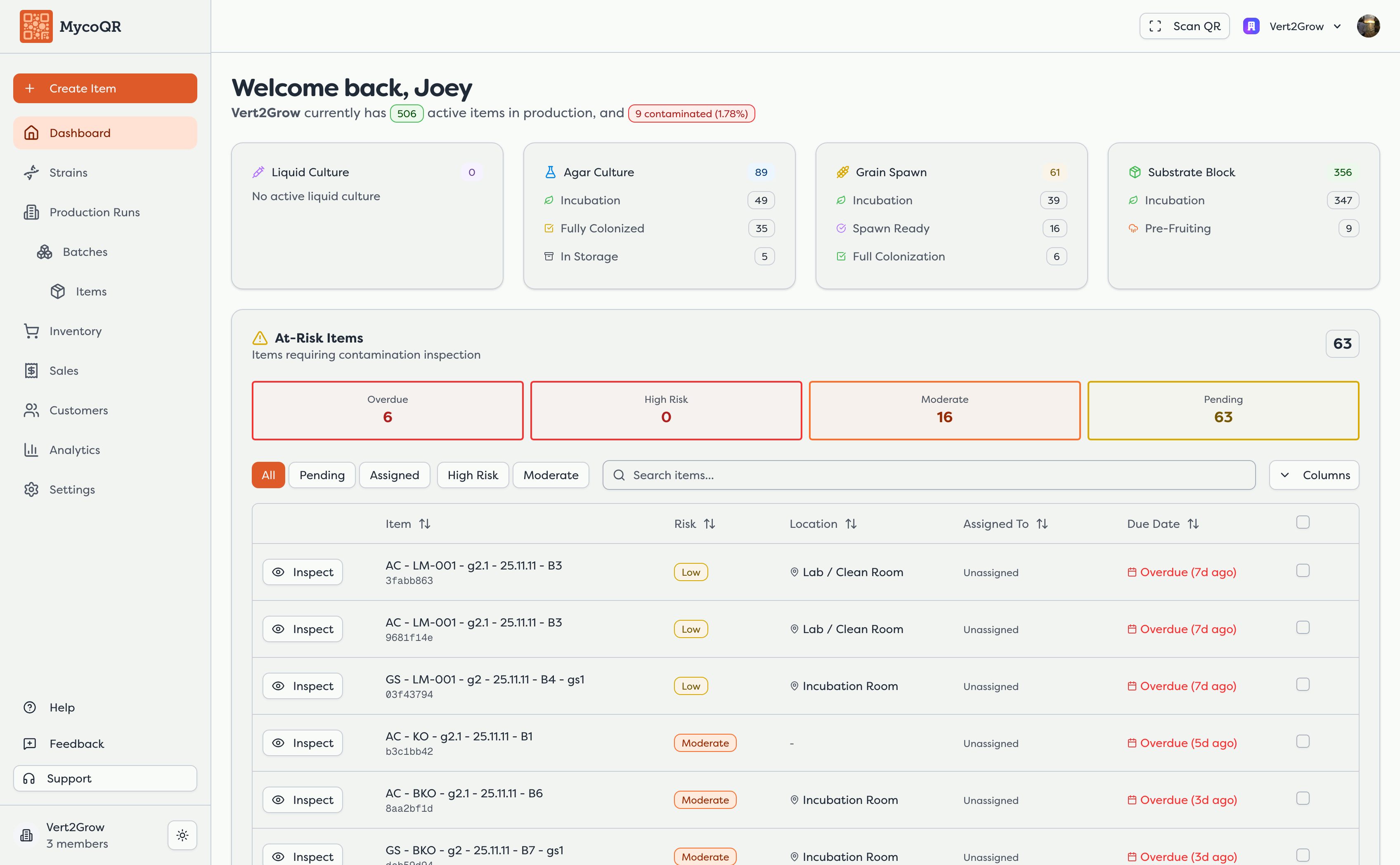 Track contamination rates by strain, substrate recipe, and sterilization method. Identify which techniques are working and which need improvement.